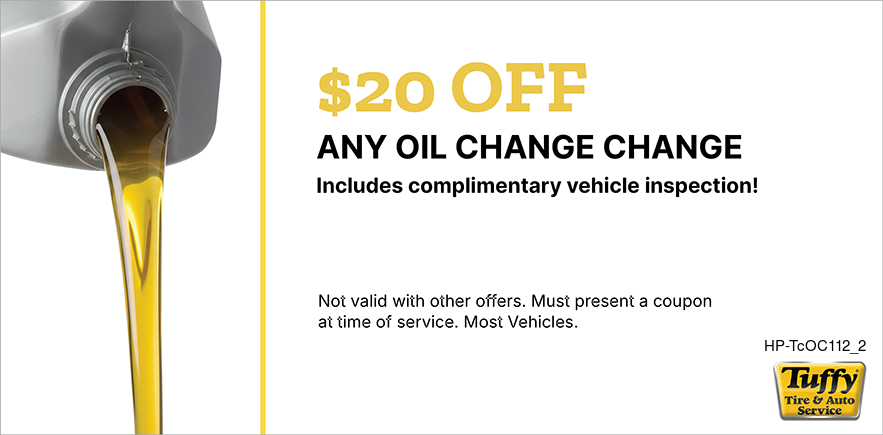 Good only atTuffy Bloomington Expires 07/15/26 Schedule Service Print coupon Share to Google Share to Facebook Offer details $20 OFF Any Oil Change Includes Complimentary Inspection! * See coupon for exclusions. Email Coupon First name * Last name * Email address * Sign me up to receive future offers via text from Tuffy Bloomington: Via Text Cell/Mobile Phone By clicking "I accept" below, I expressly agree to receive marketing text messages made by or on behalf of Tuffy Bloomington to the telephone number(s) I’ve listed above. I understand that I may receive such text messages by the use of Automatic Telephone Dialing Systems (including “Predictive Dialers” or “Autodialers”) and I agree to receive them even if I have registered my number(s) with my state or federal Do-Not-Call list(s). I understand that such text messages will include advertising containing offers for goods or services and that I may revoke this consent at any time by telephone, return text message or by Visiting tuffybloomington.com/stop to unsubscribe. Message and data rates may apply. I also understand that I am NOT required to provide this consent as a condition of purchasing goods or services. I accept View: Text Specials Terms and Conditions with this link.